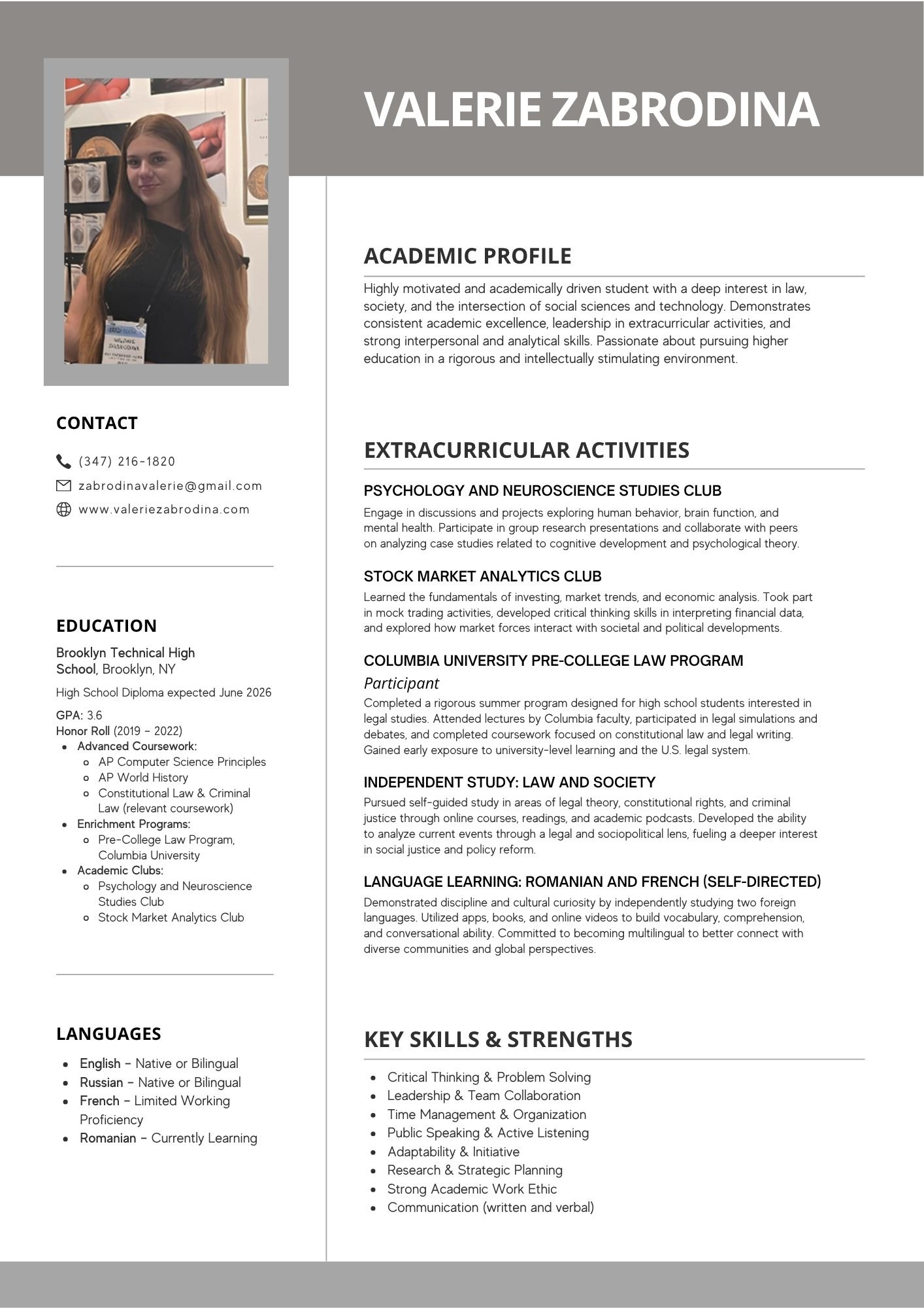 I am also actively expanding my linguistic skills and global perspective to support future academic and legal work.